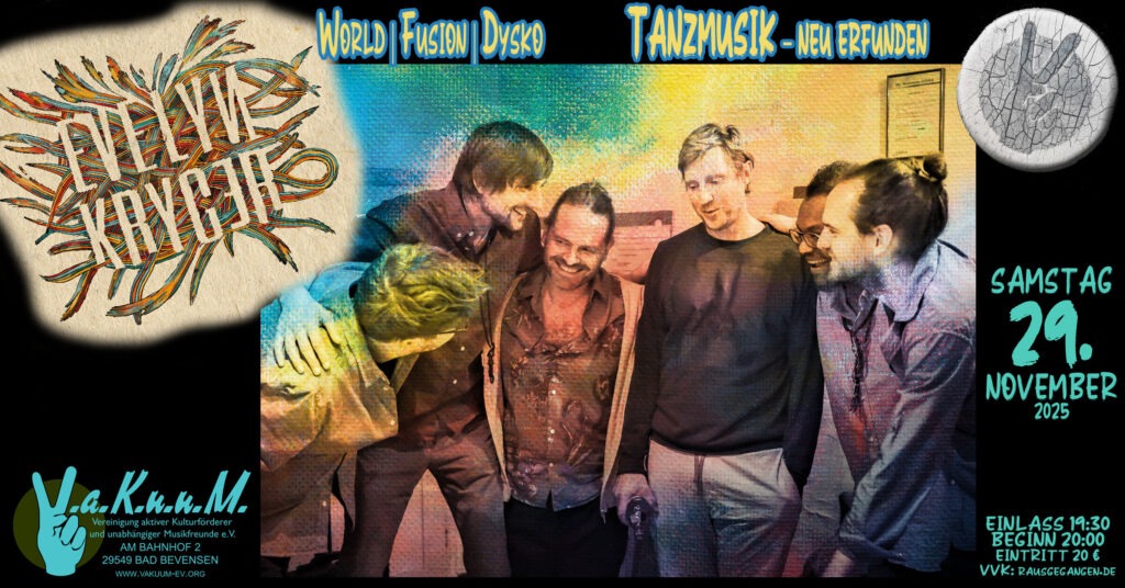 Der Bandname Evelyn Kryger ist ein Synonym für grenzenlose Gestaltungsfreiheit in der Musik. Zwischen konzeptioneller Präzision, spielerischer Freiheit und unbändiger Live-Energie wuchert die Band mit einer Vielzahl von stilistischen Möglichkeiten, die sich mal gegenseitig durchdringen, um an anderen Stellen scharfe Bruchkanten zwischen Postrock, Jazz, Global Groove, Ambient, urbaner Wucht und den erlesenen Feinheiten aller erdenklicher musikalischer Ethnien hervorzurufen. Ähnlich wie und doch anders als in den besten Momenten von Return To Forever, der Pat Metheny Group, Radiohead, Godspeed You! Black Emperor oder ADHD fließen all diese Einflüsse und Hintergründe zu einem harmonischen Ganzen zusammen, das keiner Kategorisierung mehr bedarf. Evelyn Kryger hat eine ureigene Klangbildsprache entwickelt, deren Vokabular auf die bedingungslose Kompatibilität aller Ausdrucksformen und Versatzstücke hinausläuft. Spätestens seit dem neuen Album „III“ offenbart sich die Erkenntnis, dass man diese Verbindung von Komplexität und offener Geschlossenheit gepaart mit einer guten Portion Tanzbarkeit so nur von Evelyn Kryger bekommt.