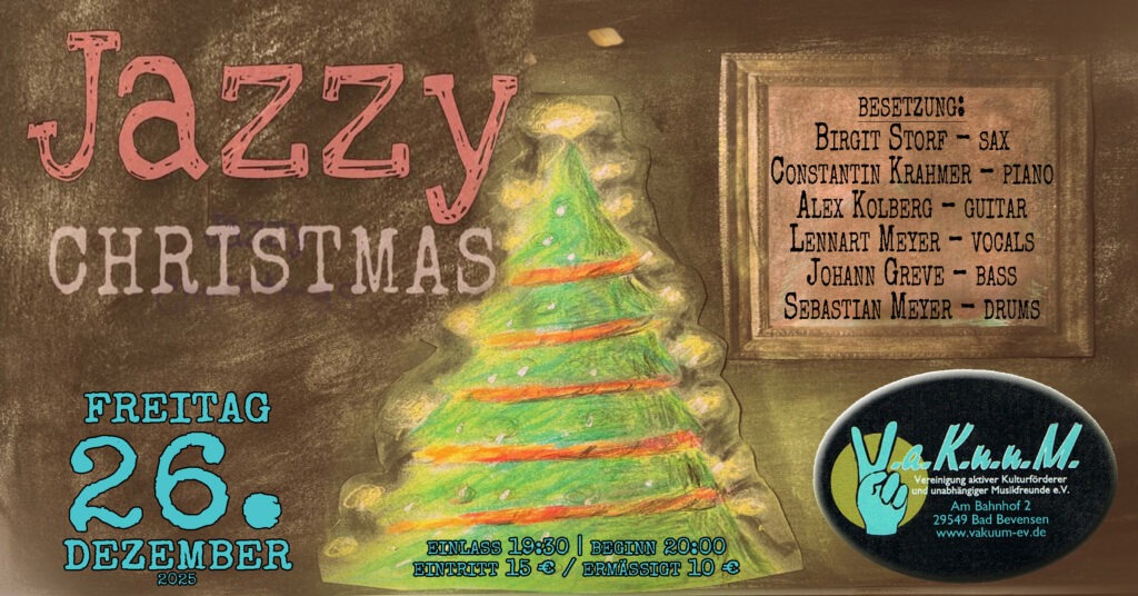 Vorverkauf: https://rausgegangen.de/events/jazzy-christmas-0/