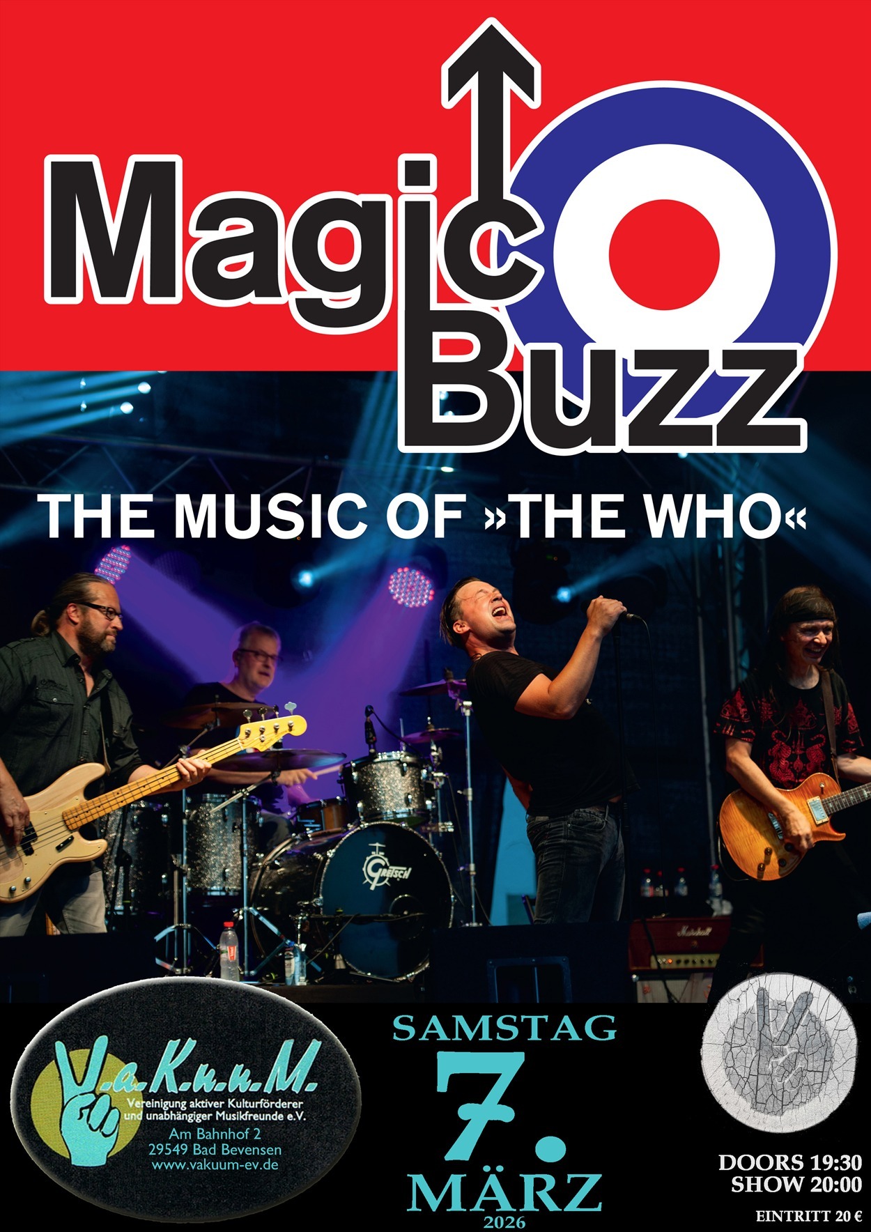 Die Band MAGIC BUZZ hat sich der Musik von THE WHO aus den 60er und 70er Jahren verschrieben. Auslöser für die Gründung war der große Erfolg beim „Summer of Lovers 2019“, einem „50 Anniversary Woodstock Festival“, für das sich die Musiker zusammen fanden um ein paar Songs von THE WHO zu präsentieren.