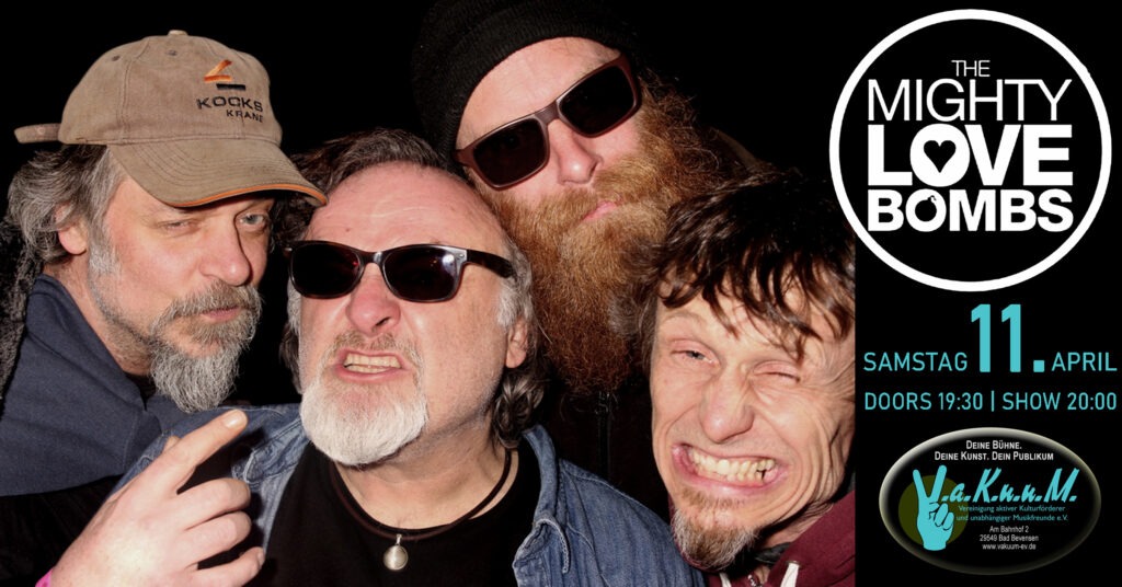 THE MIGHTY LOVEBOMBS sind seit über 10 Jahren eine Institution im Bermuda-Dreieck zwischen Hamburg, Lüneburg und Buchholz in der Nordheide. Ihr Ziel war es immer, ihr Publikum auch ohne abgehangene Rock-Klassiker à la „Sweet Home Alabama“ oder „Smoke on the Water“ mitzureißen.